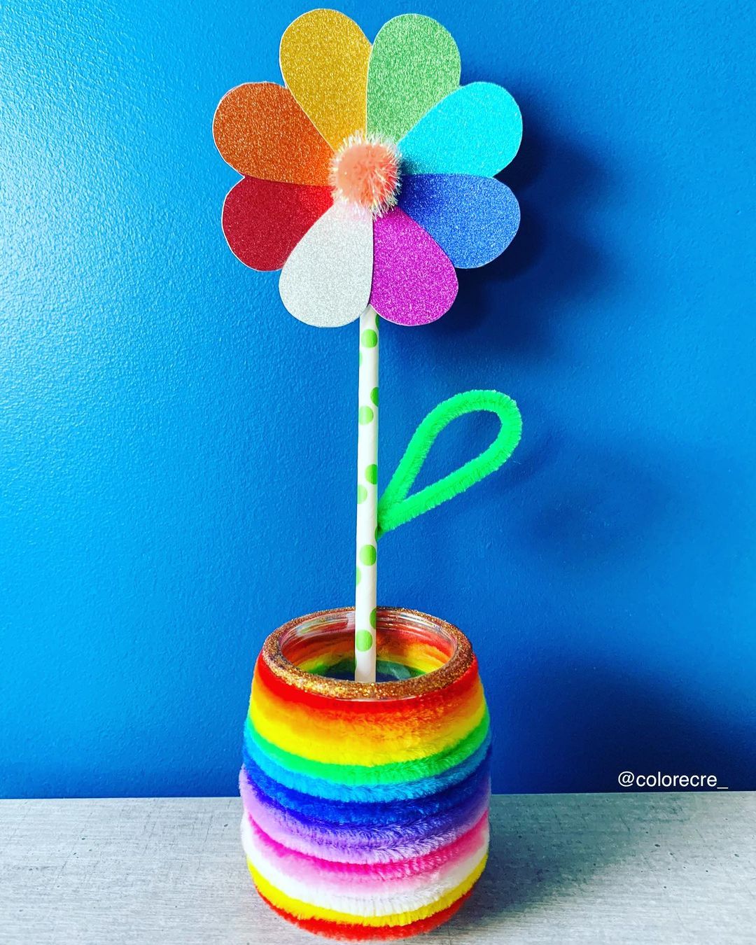 با کاغذ رنگی و کاموا دست به کار شوید و گلدان و گل زیبا را بسازید