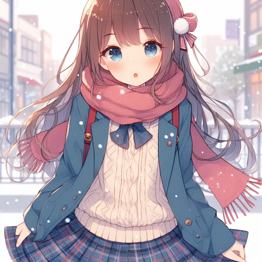 دختر انیمه ای کیوت با یونیفرم مدرسه زمستونی مناسب پروفایل اوتاکو ها توی فصل زمستون