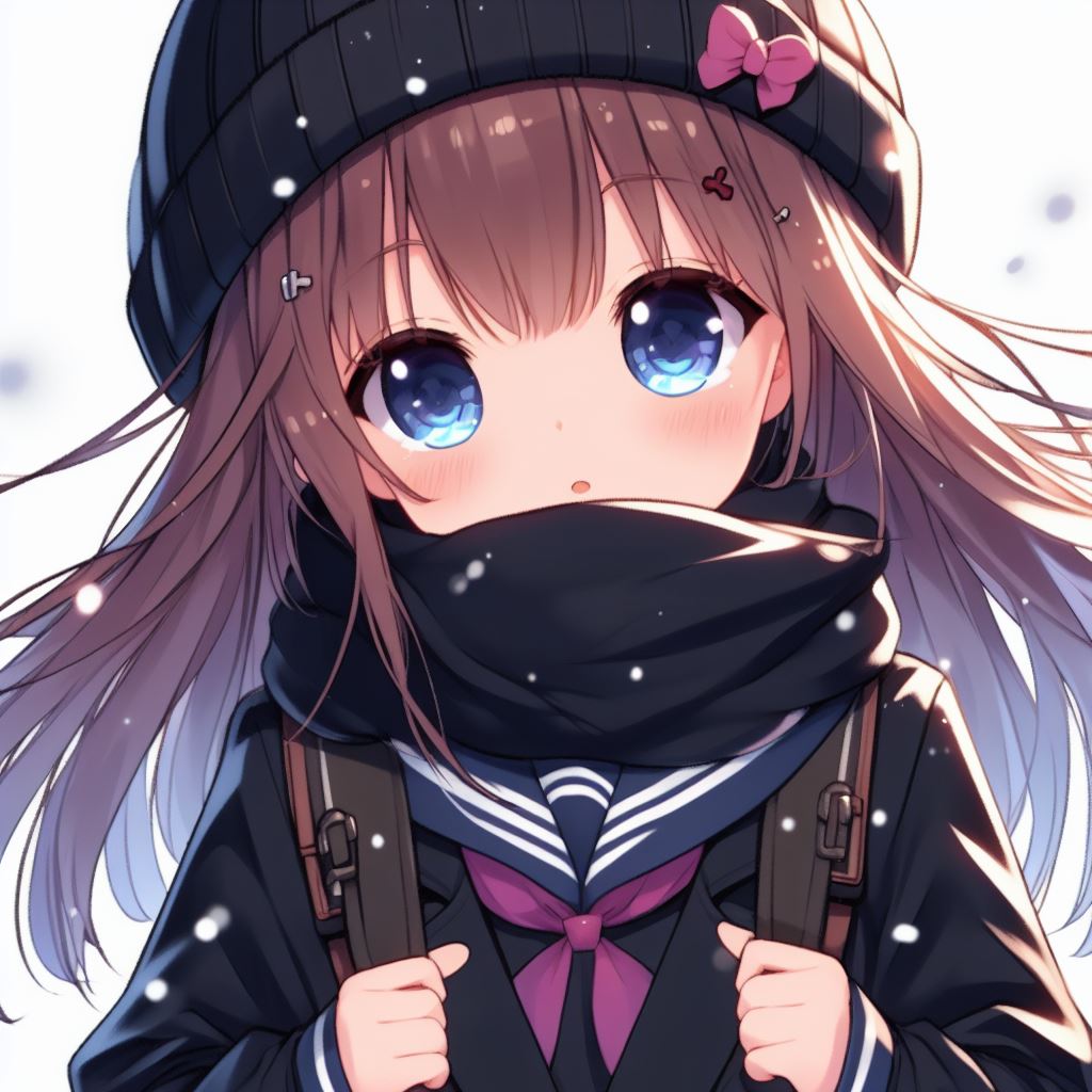 دختر انیمه ای کیوت با یونیفرم مدرسه زمستونی مناسب پروفایل اوتاکو ها توی فصل زمستون