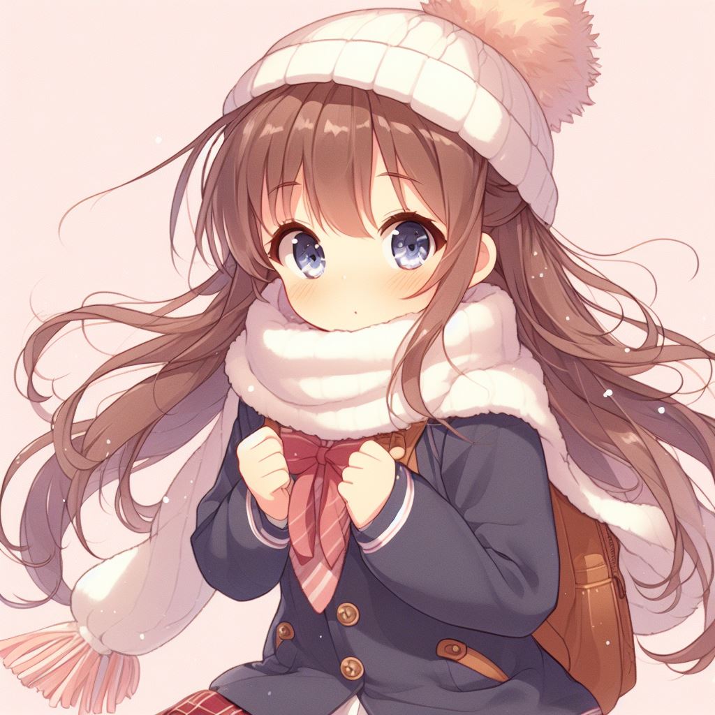 دختر انیمه ای کیوت با یونیفرم مدرسه زمستونی