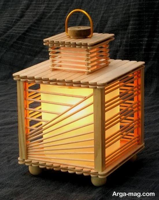 در ساخت این آباژور میتوانید از انواع چوب بستنیها استفاده کنید. حتی می توانید به سلیقه خودتان آن را رنگ کنید.