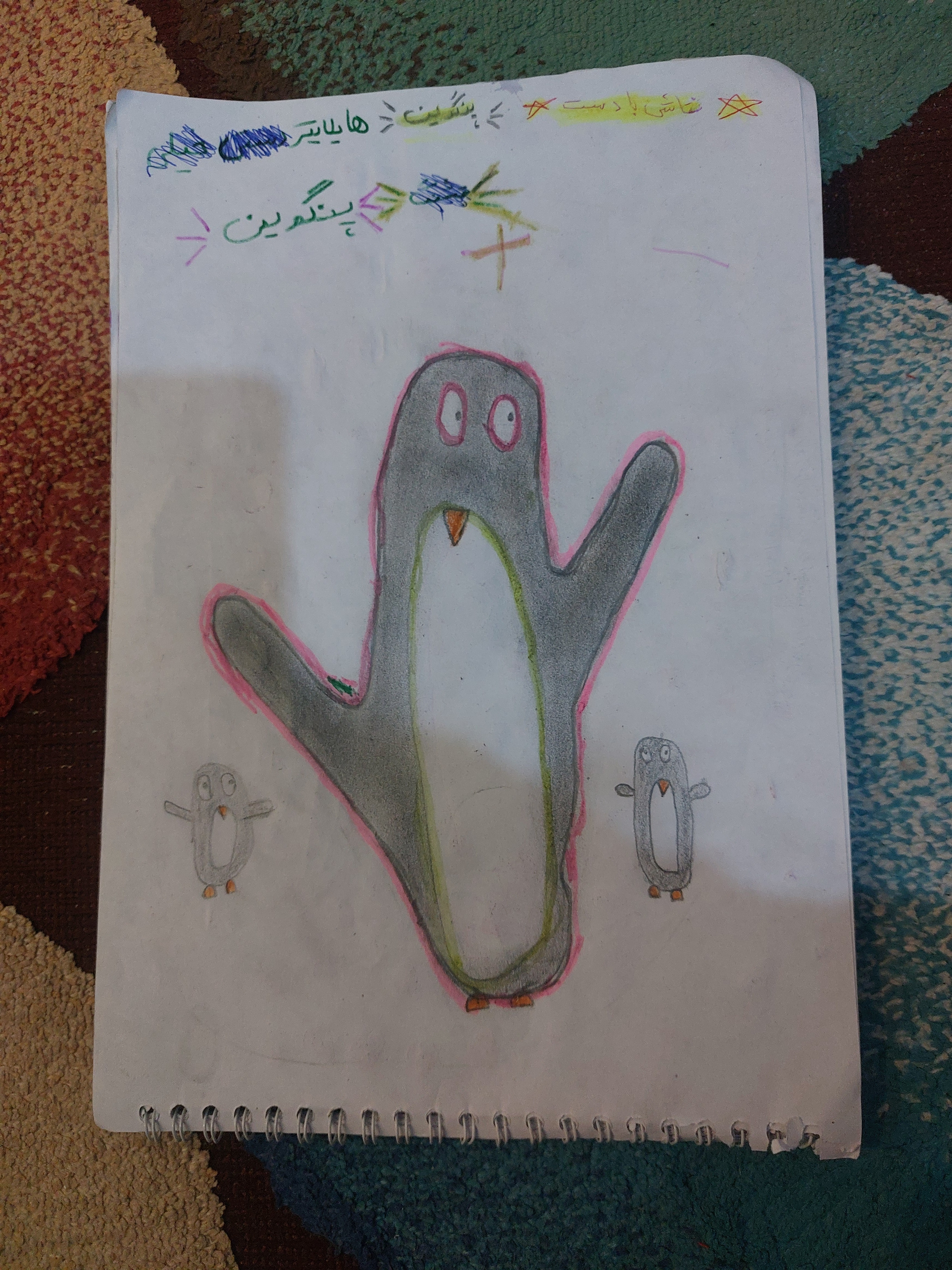 من خیلی نقاشی کاردستی دوست دارم امید وارم که شما هم بتونید این نقاشی زیبا را بکشید اسم نقاشی مربوط پنگوئن است 😍😍😍😍