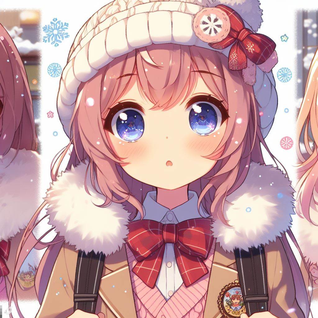 دختر انیمه ای کیوت با یونیفرم مدرسه زمستونی