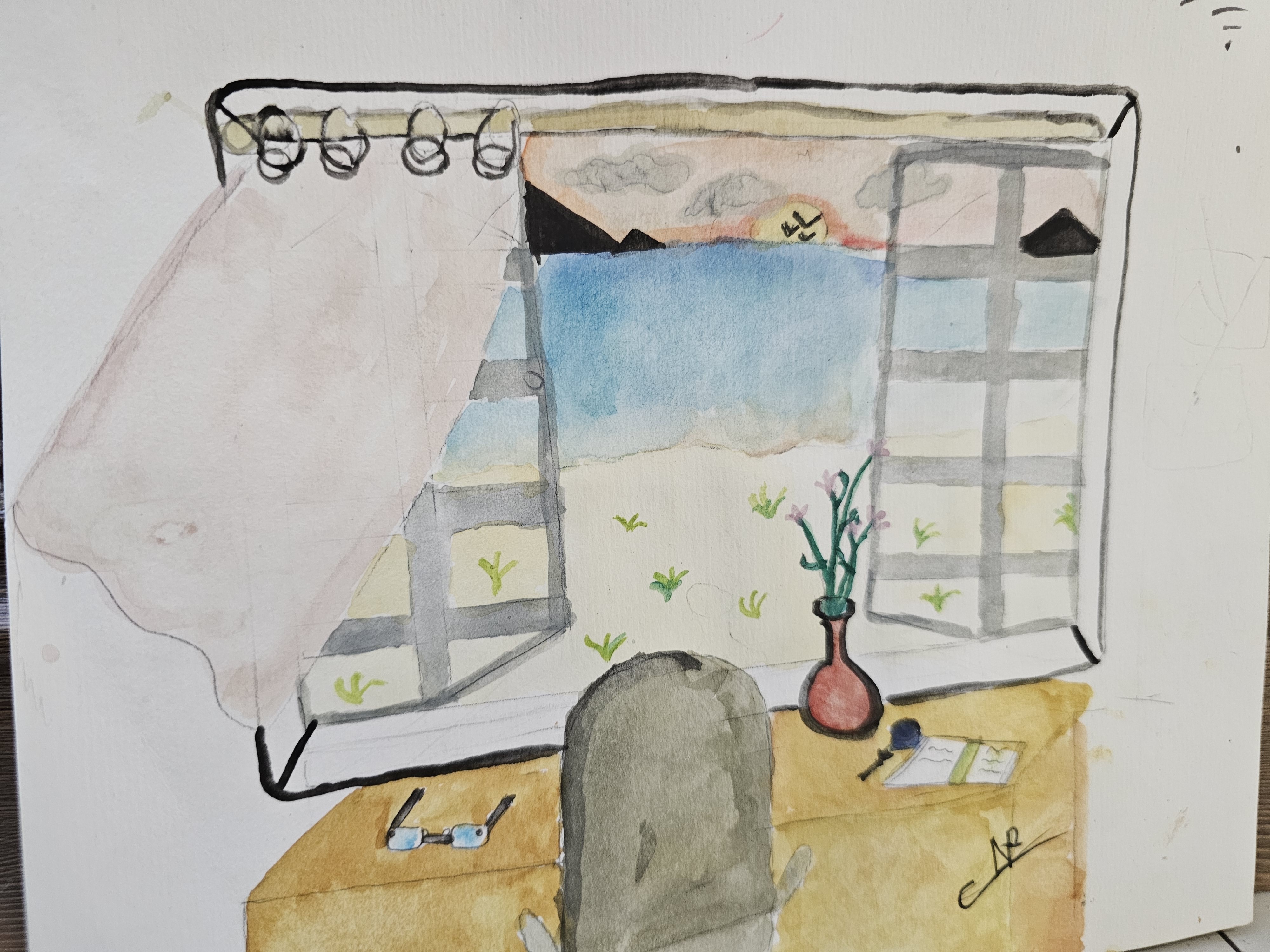 نرگس نصیری هستم نقاشی دریه با تکنیک های ابرنگ رو کشیدم