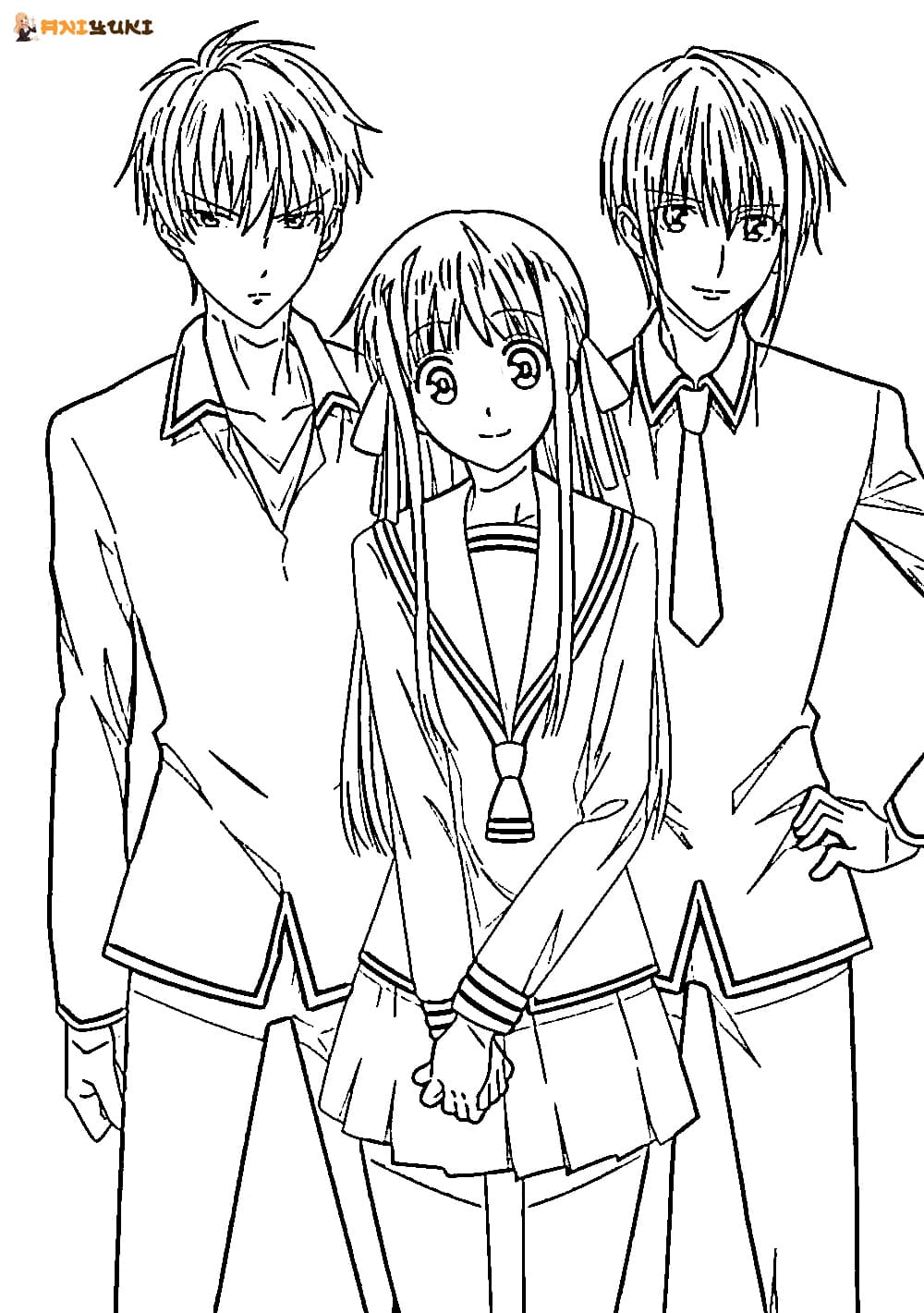 نقاشی شخصیت های انیمه سبد میوه توهورو.یوکی.کیو