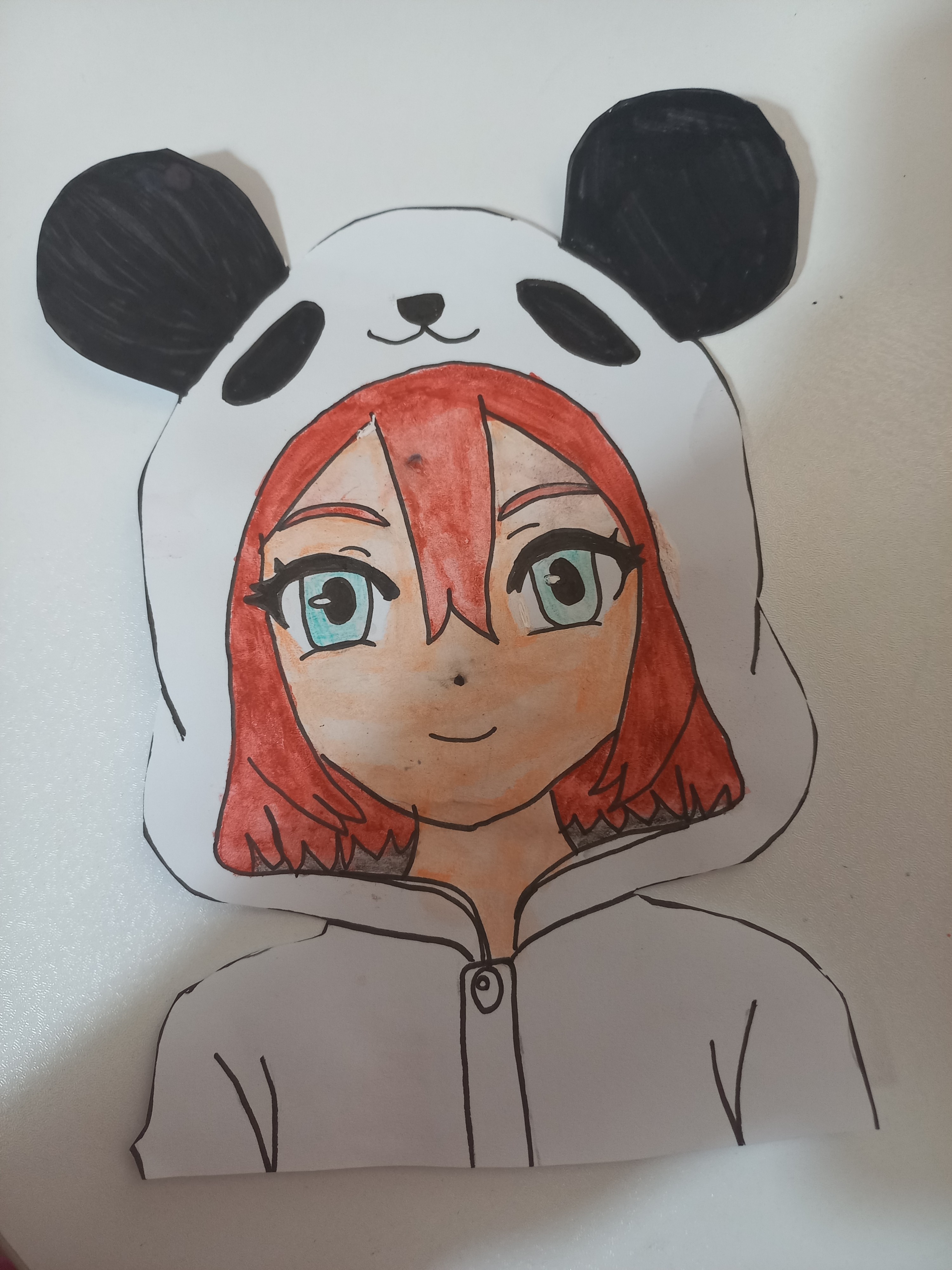 نقاشی دختر انیمه ای با لباس خواب خرسی تکنیک رنگ آمیزی: مداد آبرنگی