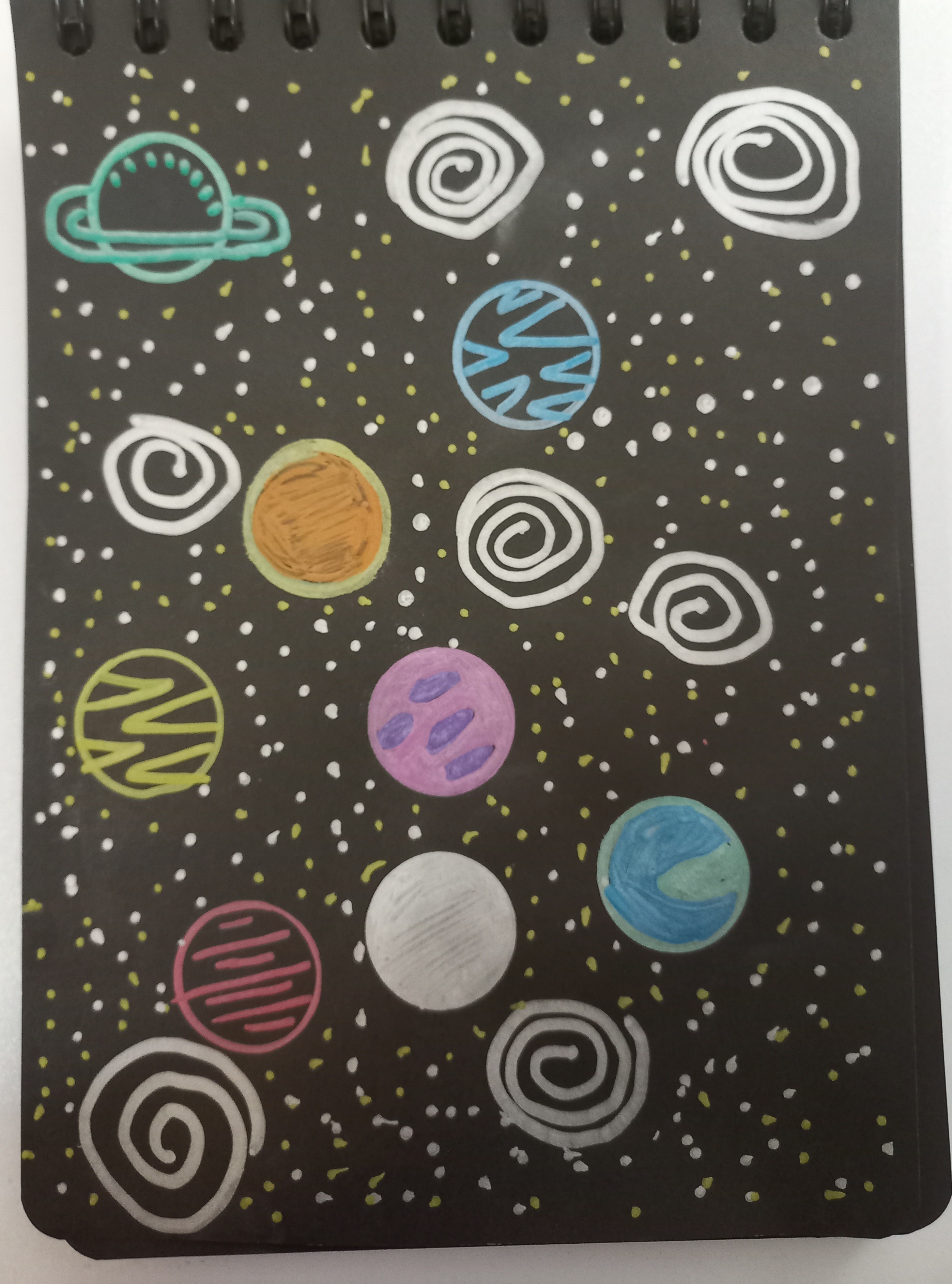نقاشی سیاره ها روی ورقه ی سیاه